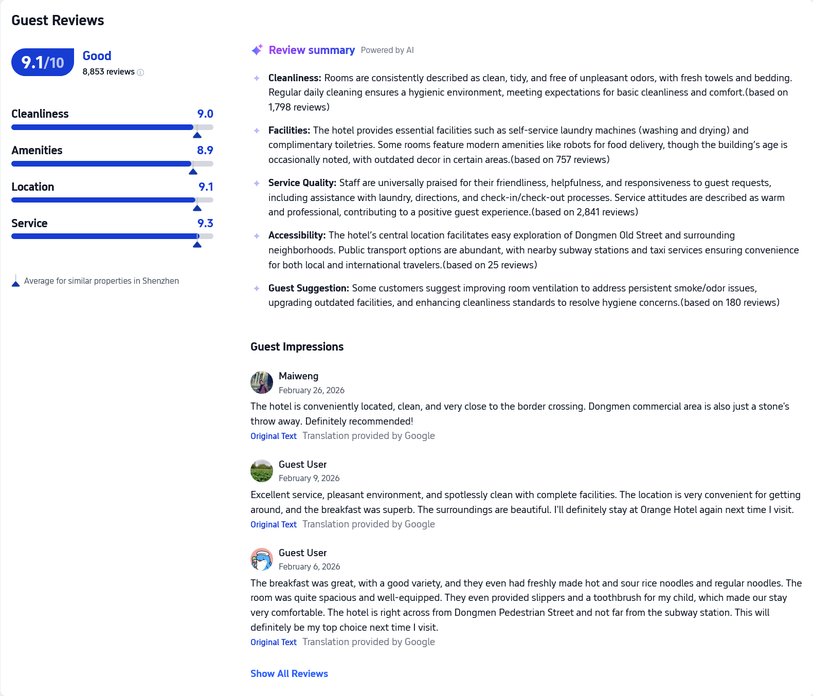 Das Chengguo Hotel liegt im Herzen des Luohu-Bezirks an der Hubei Road 2195 und bietet direkten Zugang zur lebhaften Dongmen-Fußgängerzone in Shenzhen. Nur 300 m von der U-Bahn-Station Hubei (Linie 2) und 100 m vom Einkaufsparadies Dongmen entfernt, vereint dieses 3-Sterne-Boutique-Hotel Komfort und Bequemlichkeit. Das 2019 eröffnete Hotel verfügt über 131 Zimmer auf 8 Etagen und hat eine Gästebewertung von 9,1 von 10 Punkten basierend auf über 8.800 Bewertungen. Es ist ideal für Geschäftsreisende und Touristen gleichermaßen und bietet seinen Gästen die Nähe zum Hafen von Luohu, zum Hauptbahnhof Shenzhen sowie zu zahlreichen Restaurants und Unterhaltungsmöglichkeiten.